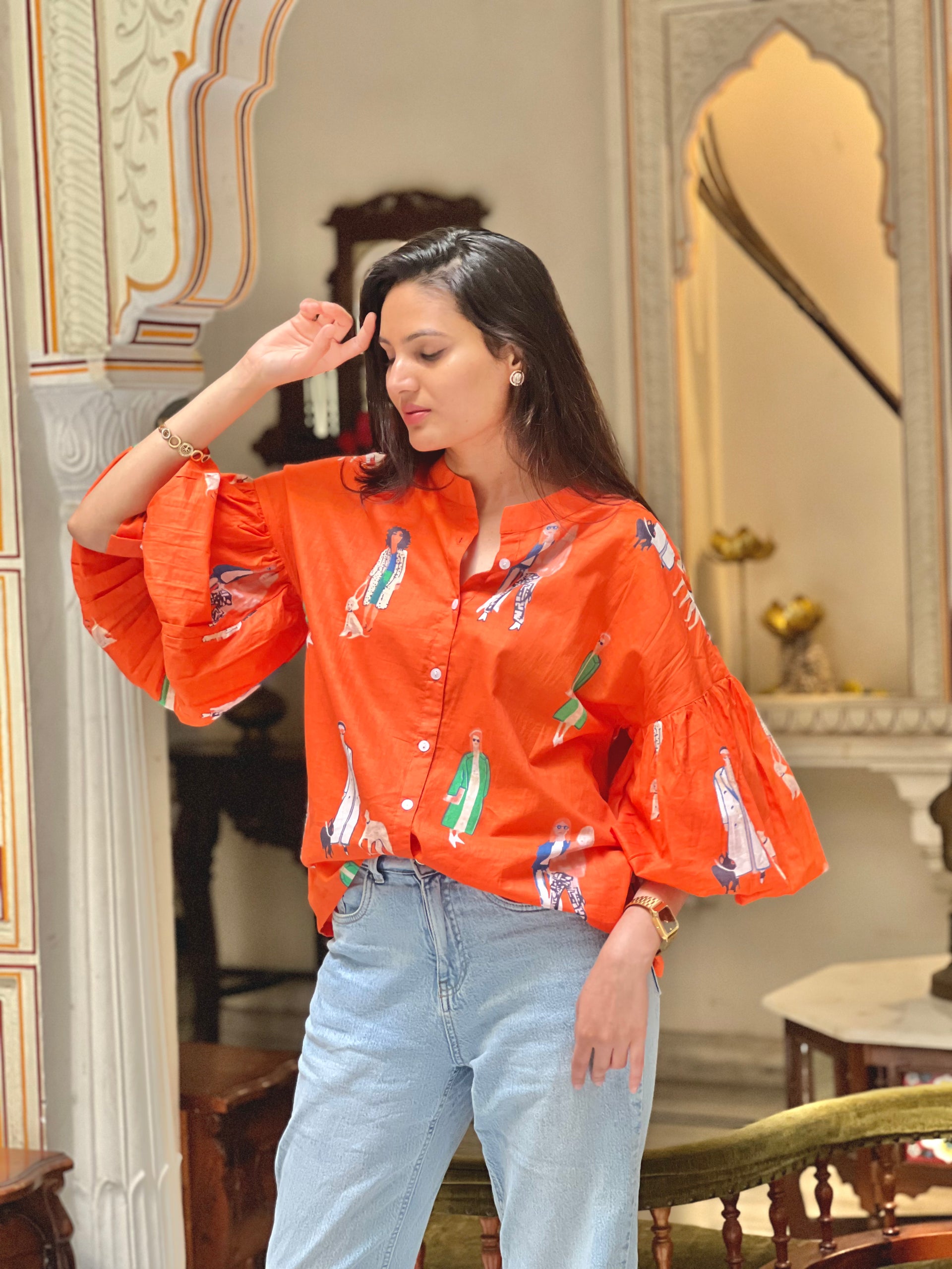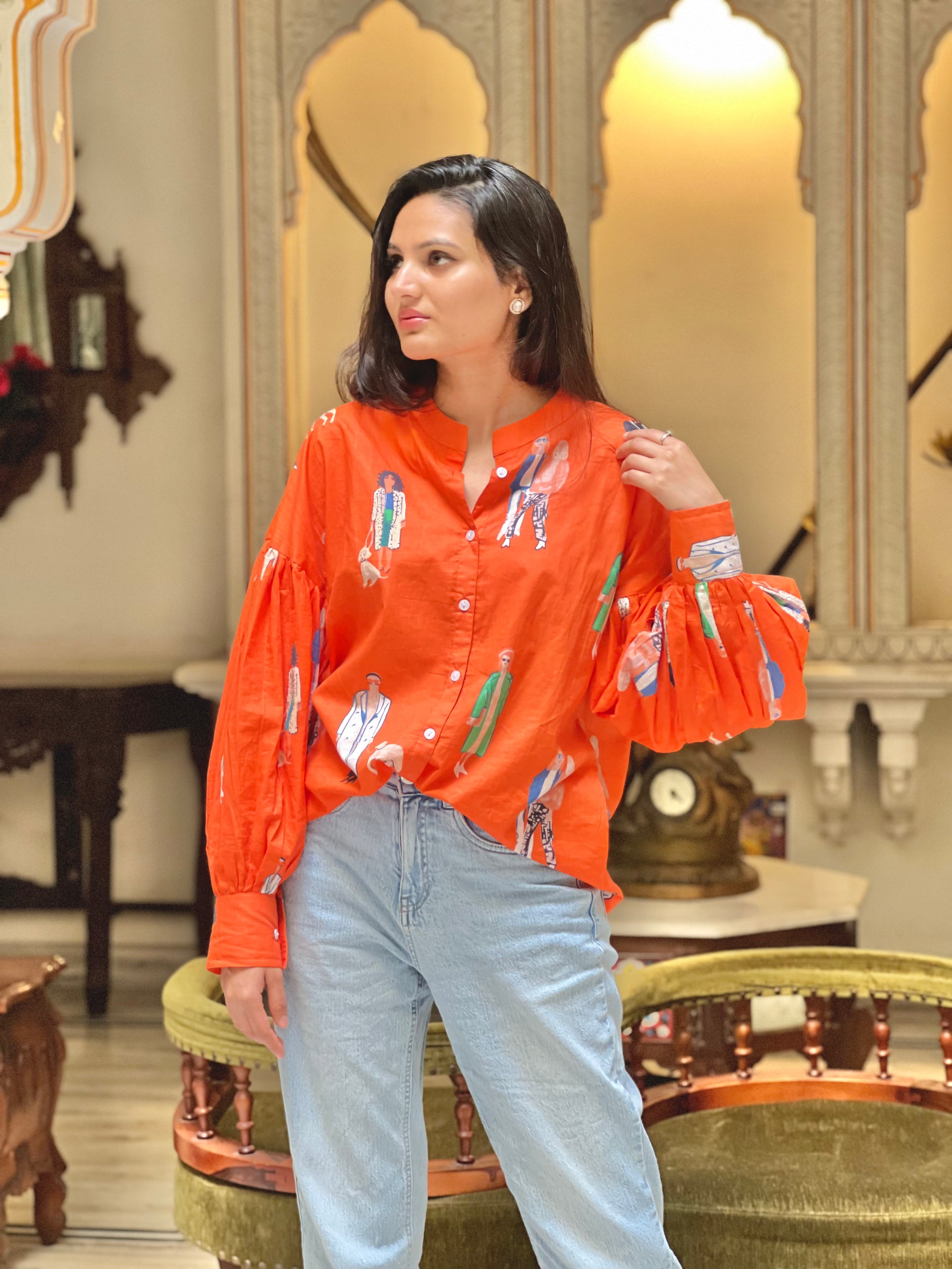 Main Character Energy Orange Shirt- 100% Cotton Shirt I Nehfi